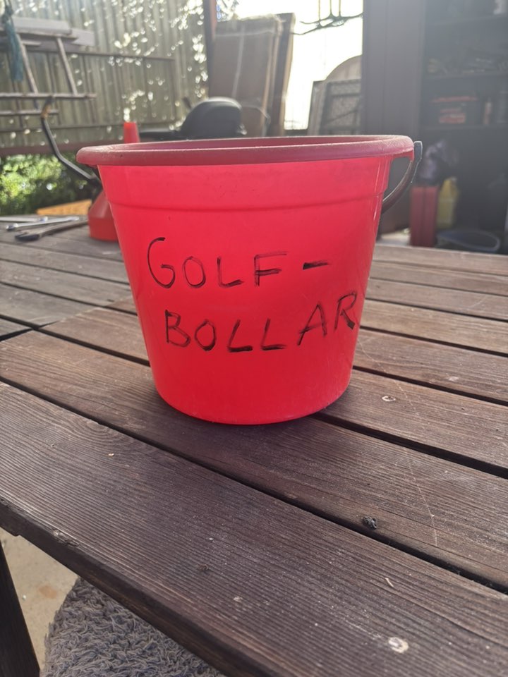 De är även tacksamma om vi kan hjälpa till att samla ihop bollar som hamnat i höga gräset mellan drivning ranchen och vårt område. Bollar som hittas kan samlas i röda hinken som finns på bordet i carporten utanför lilla hallen.